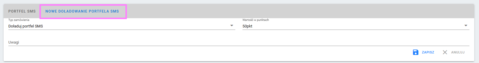 W tym celu przejdź do działu Komunikacja → Portfel SMS, a następnie "Nowe doładowanie portfela SMS".